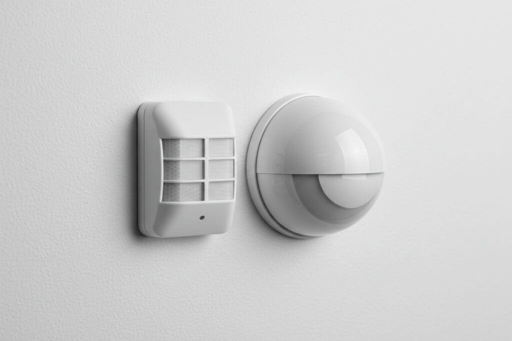 Wewnątrz budynku warto rozważyć czujnik obecności zamiast klasycznego czujnika ruchu. Różnica polega na czułości – czujnik obecności wykrywa nawet drobne ruchy osoby siedzącej, podczas gdy standardowy PIR wymaga wyraźnego przemieszczania się. To istotne w biurach, łazienkach czy pokojach dziennych.
